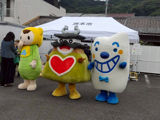 開会式には洲本市のマスコットキャラクター「なのはちゃん」、洲本市社会福祉協議会の「みっくマン」、兵庫県歯科医師会の「でん太くん」が勢ぞろいし、にぎやかなスタートとなりました。
