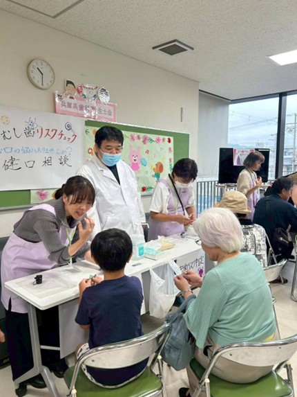 歯科衛生士会のブースでは、淡路支部の皆さまのご協力のもと、歯ブラシデコレーションや紙芝居、むし歯リスク判定、噛む力測定を実施しました。多くの方に楽しくご参加いただき、笑顔があふれるイベントとなりました。