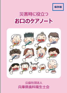 災害時の歯科保健に役立つノートです。ライフステージごとのお口のケアの方法を知ることができます。平時から、避難グッズに歯ブラシと共に入れて、備えておきましょう。